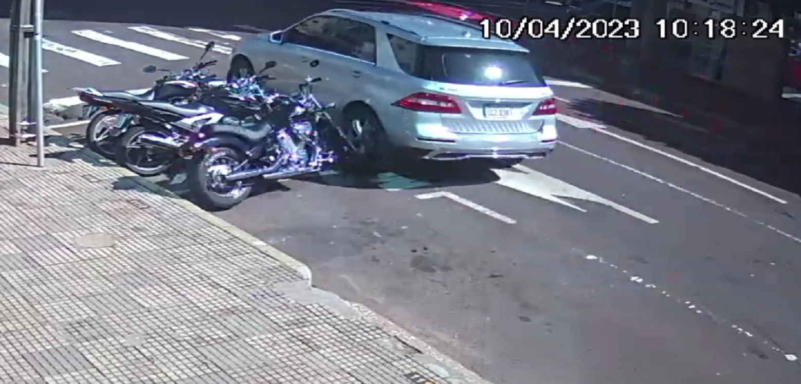Câmera flagra carro batendo em moto estacionada